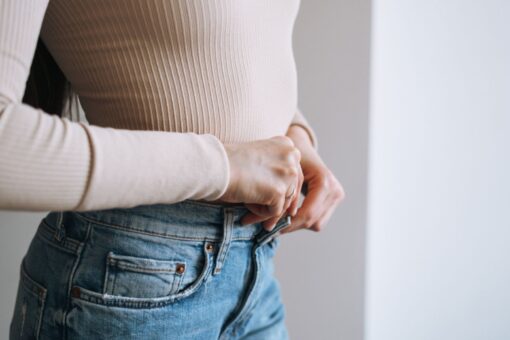 • Test przysiadu: Zrób głęboki przysiad. Albo po prostu usiądź na stołku w przymierzalni. Zobacz, czy pas z tyłu nie odstaje, odsłaniając plecy, i czy materiał nie wpija się boleśnie w brzuch.