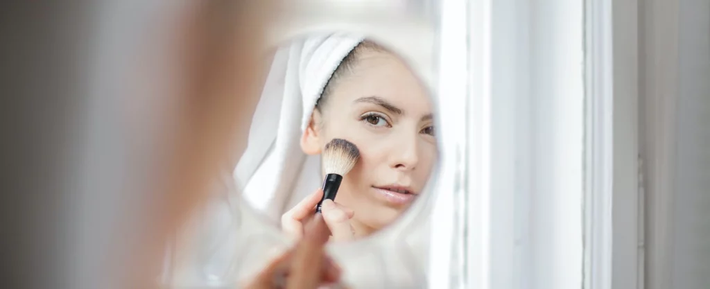 - Wyjdź na zewnątrz. Sprawdź kolory w naturalnym świetle dziennym – światło w drogerii potrafi przekłamać każdy odcień.