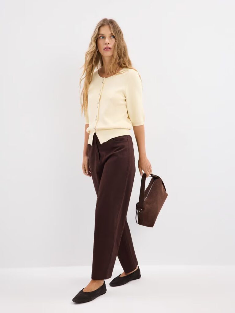 Ten duet został stworzony dla ciepłych typów urody – zarówno „jesieni”, jak i „wiosny”. Brązy pięknie podkreślą głębię ich karnacji, a maślana żółć doda twarzy promiennego blasku. To bezpieczne, a zarazem bardzo efektowne połączenie, które sprawdzi się na co dzień i w bardziej formalnych stylizacjach. Jeśli szukasz więcej inspiracji, sprawdź nasz przewodnik, jak nosić kolory Pantone 2026 w swojej szafie.