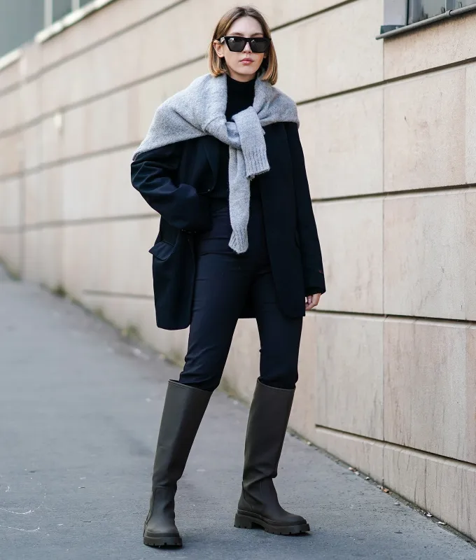 - Uniwersalne kolory – czernie, szarości i granaty są wszechstronne i łatwe do zestawienia z różnymi elementami garderoby.