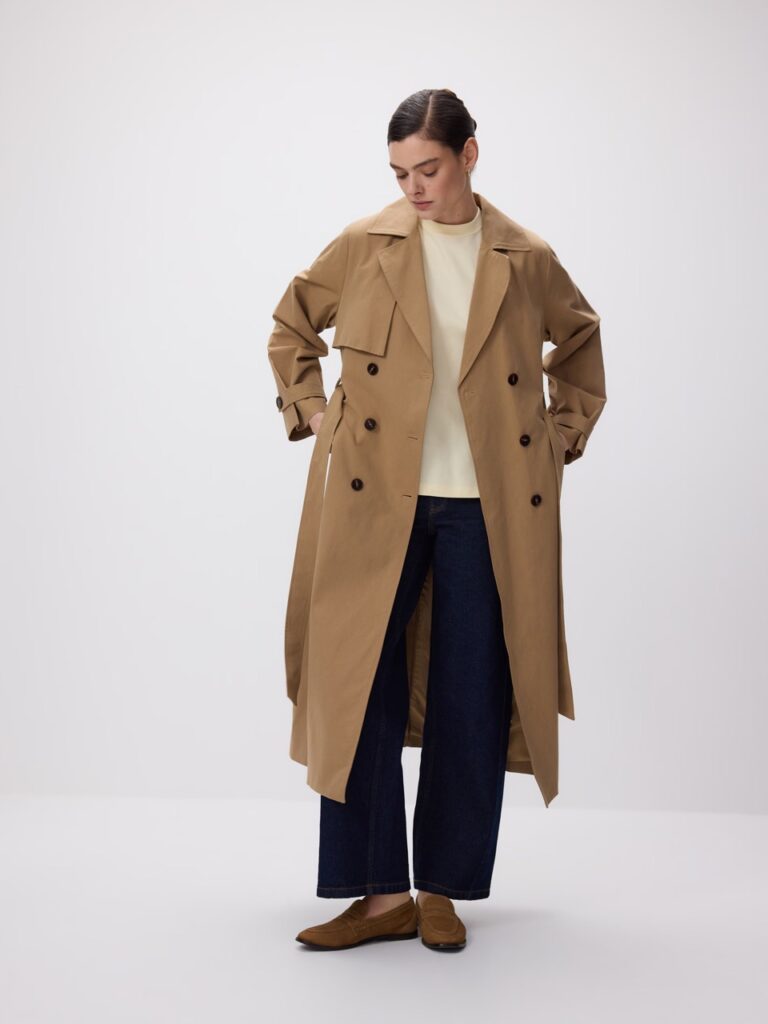 - Długi płaszcz – Doskonały na chłodniejsze dni, w stylu minimalistycznym lub klasycznym.