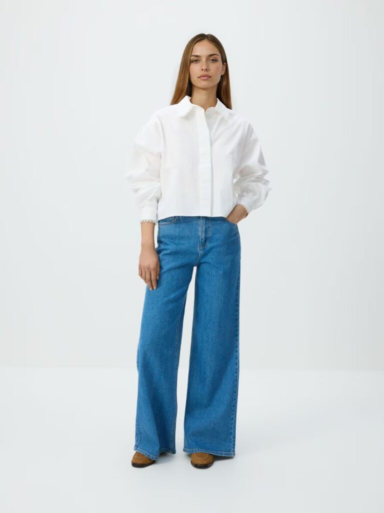 - Klasyczna biała koszula – Idealna do biura, na spotkania czy na wieczorne wyjścia. Można ją łączyć z niemal wszystkim.