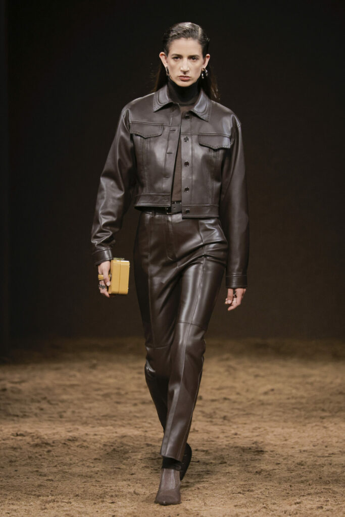 • Skórzane akcenty w połączeniu z dzianinami – skórzane dodatki, takie jak torebki czy buty, mogą dodać nieco drapieżności do miękkich, swobodnych stylizacji.